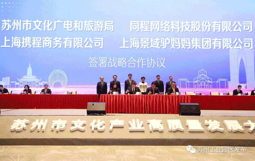 苏州市文化广电和旅游局与相关头部文旅企业签约,48个重点文旅投资项目现场签约,总额720亿元。会上还宣布了苏州“运河十景”建设正式启动,举行了国家文化和旅游消费示范城市授牌仪式