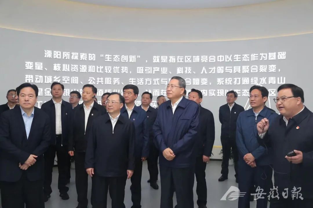 4月22日上午,由安徽省省委书记李锦斌带队的安徽省党政代表团在江苏学习考察。江苏省委副书记、省长吴政隆陪同。 第一站是国家生态市、全国生态文明建设示范市、全国文明城市溧阳。安徽省党政代表团冒雨来到溧阳生态创新展示馆,考察当地探索生态创新的经验做法和苏皖合作示范区建设情况。 新闻素材来源:安徽日报微信公众号 溧阳生态创新展示馆 生态创新在溧阳 金螳螂文化匠心出品 Ecological Innovation 溧阳生态创新展示馆位于江苏省常州溧阳市天目湖游客服务中心一层、二层,建筑面积约6500平方米。 携手溧阳天目湖景区,金螳螂文化通过前沿设计与优质施工全过程出品溧阳生态创新展示馆,打造溧阳生态创新的城市名片、生态休闲旅游的网红打卡点、生态经济可视化的载体,致敬“两山论”的创新实践。 山、水、竹元素运用其中,辅以场景、多媒体的生动演绎,诠释国家生态文明建设示范城市的现实样板,呈现持续探索生态创新之路的大美溧阳。