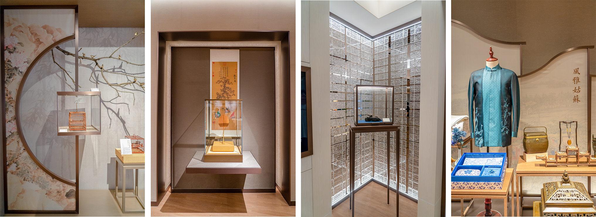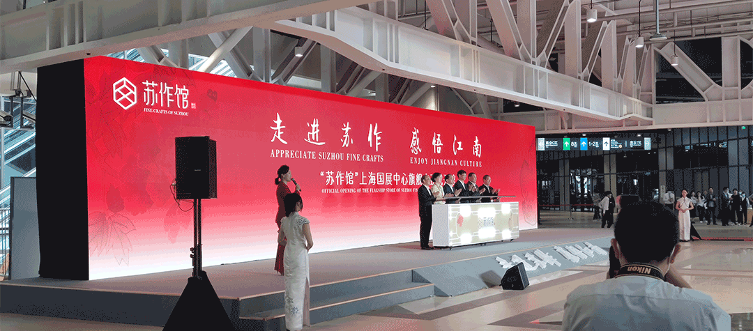 Gold Mantis 金螳螂文化倾力打造 展/现/江/南/文/化/新/价/值 (陶欣宇 展馆完工视频) 苏作匠心 苏作馆正式开馆 今天(5月26日),“苏作馆”上海国展中心旗舰店正式开馆,12个苏作门类的200多件艺术作品精彩亮相。江苏省委常委、苏州市委书记许昆林,中国工艺美术协会常务副会长、中国工艺(集团)副董事长张红出席活动并致辞。上海市副市长陈通,苏州市人大常委会主任陈振一,市政协主席周伟强出席活动。 江苏省委常委、苏州市委书记许昆林在致辞中代表苏州市委市政府对上海及社会各界长期以来给予苏州发展的大力支持表示感谢。 许书记表示,设立苏作馆就是要依托上海国展中心这个世界级“展厅”,加快打造展示江南文化魅力、宣传苏州城市形象的重要窗口和展销苏工苏作的最高级平台。 苏州将以实施文化产业倍增计划为抓手,深入挖掘“苏工苏作”丰富内涵,努力将“苏作馆”打造成为苏工苏作精品走出苏州、面向全球的“一号店”,让“苏作馆”成为展示苏州千年古城灿烂辉煌的最美窗口。 仪式后,嘉宾代表共同参观了“苏作馆”上海国展中心旗舰店。 商务部驻南京特派员王选庆,商务部进博局副局长、国展中心董事长孙成海,上海虹桥商务区管委会党组书记、常务副主任闵师林,日本国驻上海大使衔总领事矶俣秋男,大韩民国驻上海总领事金胜镐,意大利驻沪总领事陈琪以及上海市、江苏省有关部门负责同志,苏州市领导黄爱军、金洁、顾海东、杨知评、王飏,市政府秘书长周伟,各县级市(区)和市有关部门主要负责同志,首批入驻“苏作馆”的中国工艺美术大师、非遗传承人代表等参加活动。 金螳螂文化董事长杨震陪同参观 金螳螂文化作品得到领导们的高度赞赏。金螳螂文化通过“苏作馆”项目的精心打造,传承与发扬江南文化,助力打响江南文化品牌。 部分新闻素材来源:苏州新闻、苏州日报公众号 “最江南”的设计 助推江南文化 “苏作馆”坐落于上海国家会展中心,场馆面积1200平米,历时五个月精心打造。馆内规划设计有苏宫区、大师精品区、大师衍生品区、苏工苏作演艺区、直播间等功能区。 首批展销作品涵盖苏绣、缂丝、玉雕、核雕、苏扇、明清家具、蟋蟀盆、鸟笼、仿古铜器等12个苏作门类,收录了姚建萍、邢伟中、钟锦德、蒋喜、邹英姿、钱小萍、杨曦、姚惠芬、周建明、宋水官等36位工艺美术大师和非遗传承人的200多件艺术精品。 首批展销作品:200多件艺术精品 经过600余年的岁月洗礼,苏工苏作依旧光辉灿烂。金螳螂文化运用古典园林营造手法进行艺术化空间处理,提炼富于特色的江南自然及人文元素,通过现代美学的整体设计,充分展现“雅、精、细、巧”的苏作共性。 苏作馆:多媒体生动展现苏作精巧 “苏作馆”将坚持传承弘扬苏作文化,拓展深耕苏作市场,积极主动融入长三角一体化发展战略、深度对接上海,用好进博会等各类大型展会举办、人流量大等优势,加强与互联网头部平台的合作,积极面向国内、国际市场集中展销苏工苏作艺术精品。