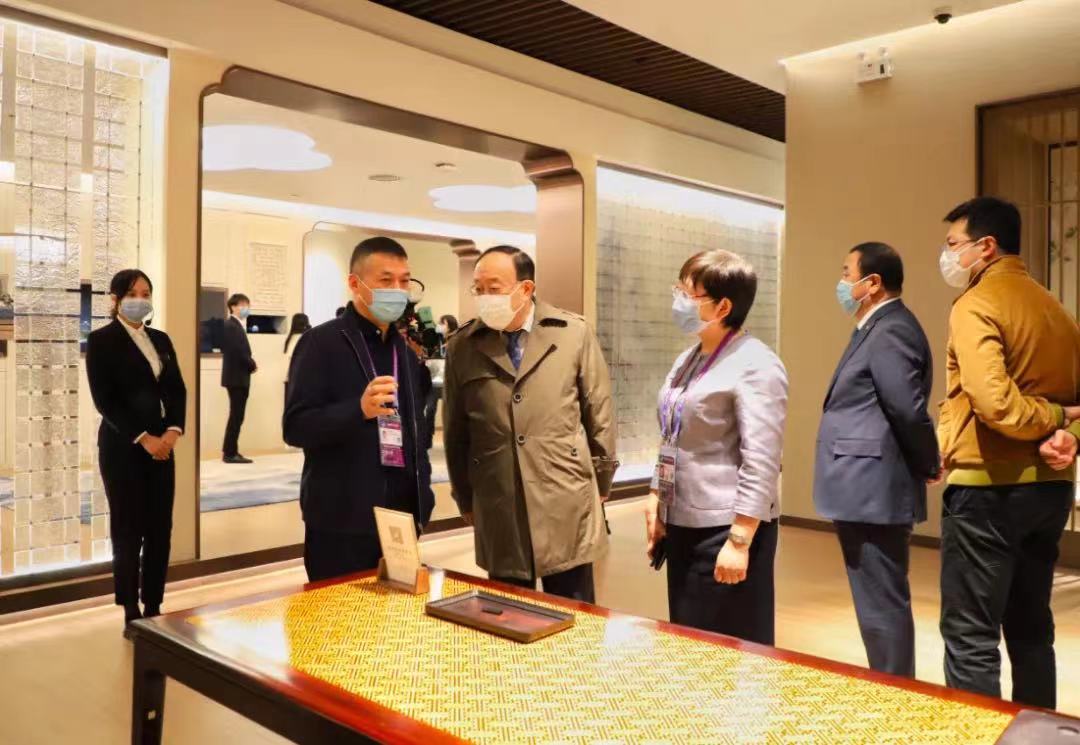 11月8日上午,商务部党组成员、副部长,进口博览会组委会办公室主任王炳南视察上海国展中心苏作馆,为苏作馆创新展示“江南文化”之美,并向世界展现“中国文化”之自信表示高度赞赏。