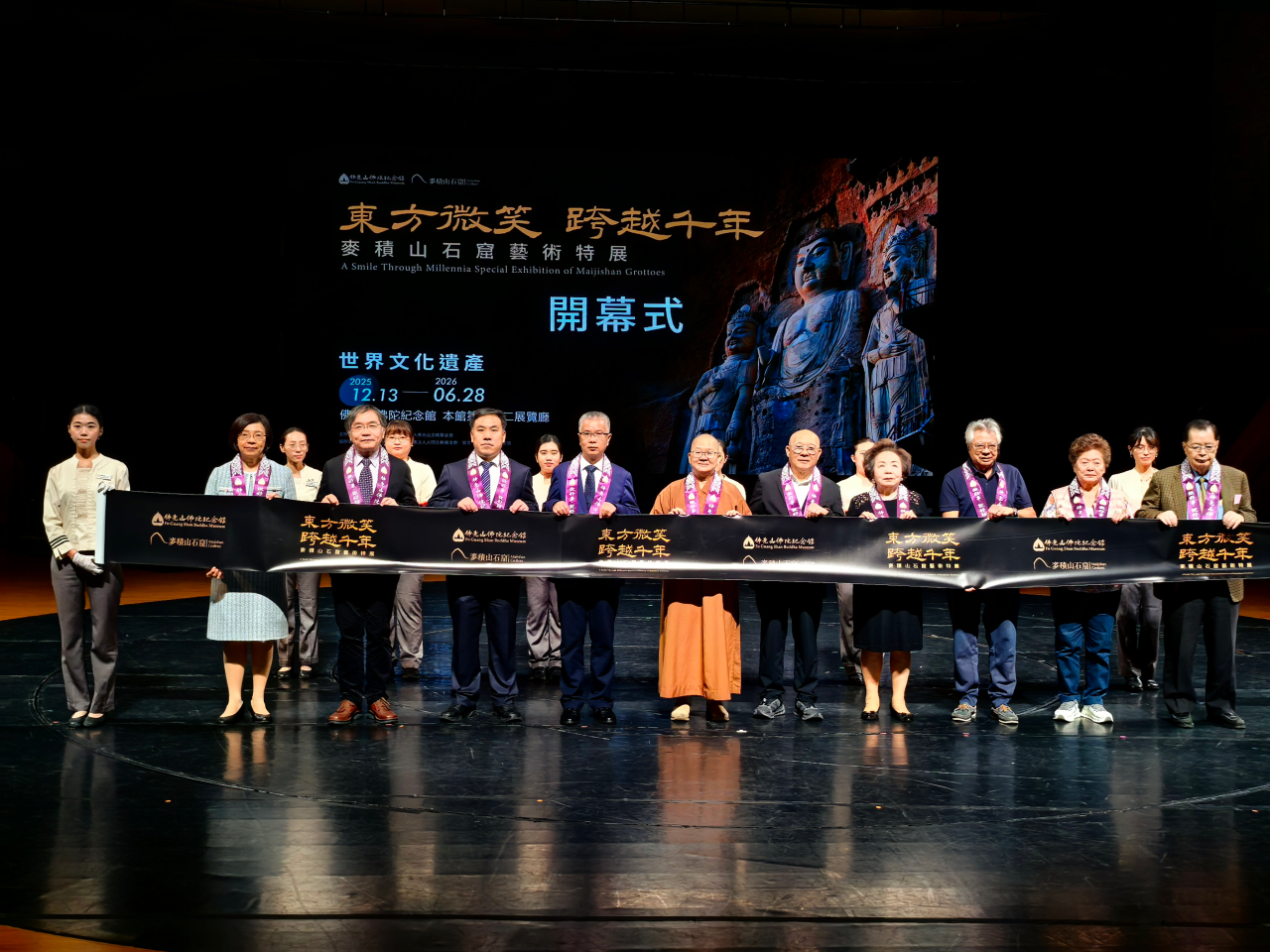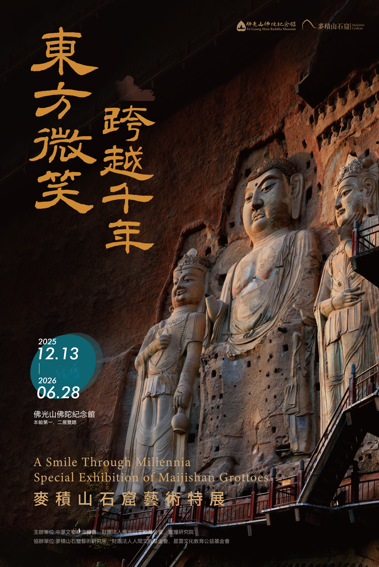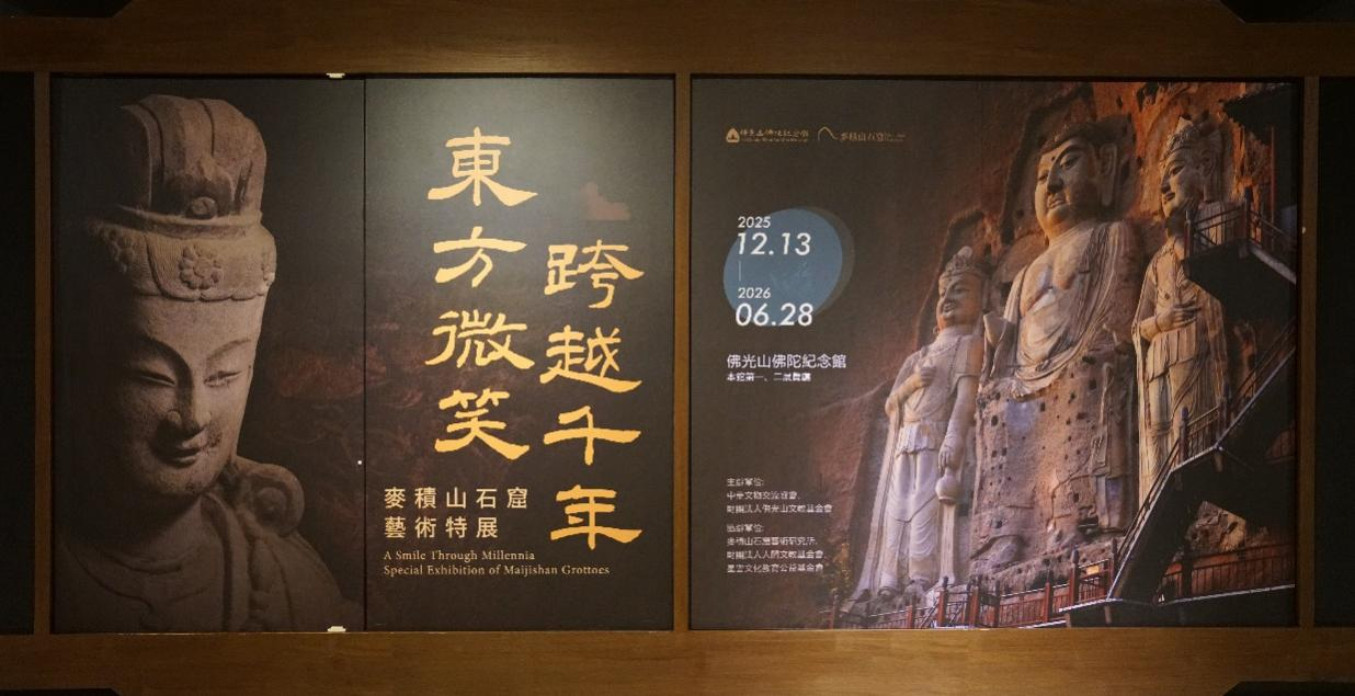 12月14日,“东方微笑 跨越千年——麦积山石窟艺术特展”在台湾佛光山佛陀纪念馆正式开展。 本次展览由中华文物交流协会、财团法人佛光山文教基金会、敦煌研究院联合主办,麦积山石窟艺术研究所、财团法人人间文教基金会、星云文化教育公益基金会共同承办,金螳螂文化设计,呈现一场集历史文脉、艺术精粹与文化传承于一体的视觉盛宴。 第一单元 丝路明珠・麦积奇观 第二单元 天工造境・绝壁佛国 第三单元 妙像丹青・东方微笑 第四单元 潜心护宝・跨越千年 敦煌研究院党委副书记郭青林,佛光山佛陀纪念馆馆长如常法师,麦积山石窟艺术研究所所长裴强强等社会各界人士300余人出席开幕式。 展览遴选麦积山石窟艺术研究所藏20件文物珍品,80件高保真临摹复制品、3座原比例复原洞窟及12件数字化展品。 精心策划“丝路明珠・麦积奇观”“天工造境・绝壁佛国”“妙像丹青・东方微笑”“潜心护宝・跨越千年”四个单元,从丝绸之路的文明交汇,到开窟营建的匠心智慧、壁上丹青的东方微笑,再到薪火相传的潜心守护,全方位呈现麦积山石窟的历史文脉与艺术精髓。 此次展览是继莫高窟、龙门石窟、云冈石窟之后,我国四大石窟系列展览在佛光山佛陀纪念馆的收官之作,不仅是一次跨越千年的艺术对话,更是海峡两岸间的文化共鸣,让观众在领略中华优秀传统文化的同时,深切感受血脉相连的文化根脉,感受代代传承的精神内核。 希望来自麦积山石窟的“东方微笑”,能触动每一位观者的心弦,愿大家在欣赏古代工匠非凡创造力的同时,深刻感受中华优秀传统文化的深厚底蕴与永恒魅力,进一步凝聚两岸心灵共鸣,构筑中华民族共有的精神家园。 本次展览将展出至2026年6月28日,展期为6个月。 特 展 信 息 展览名称:东方微笑 跨越千年——麦积山石窟艺术特展 展览时间:2025.12.13-2026.06.28 展览地点:台湾佛光山佛陀纪念馆本馆第一、二展览厅